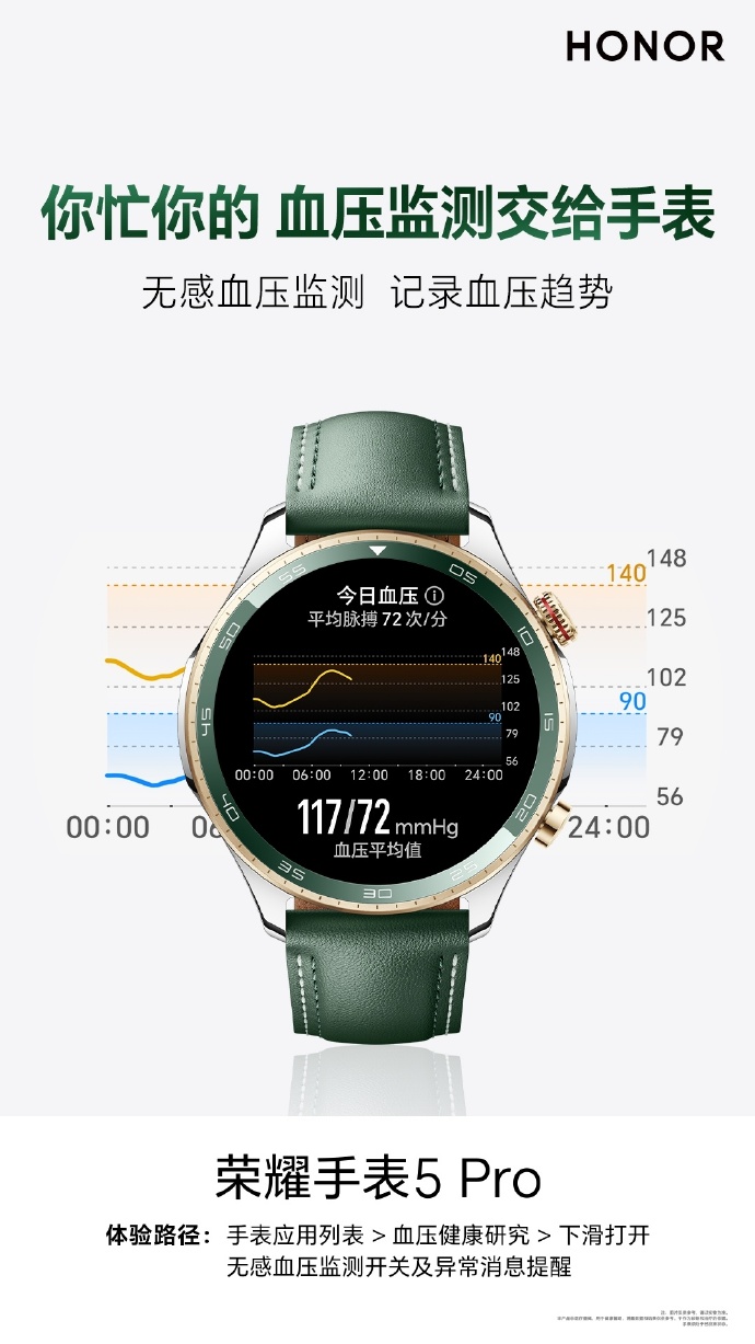 此外,该产品支持无感血压监测功能,用户可随身记录血压,并且提供非药物控压建议。