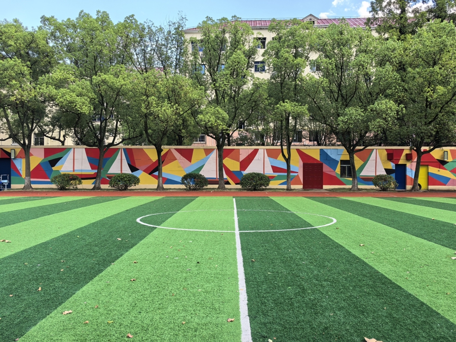 操场边上的一堵墙,经过彩绘,为校园增添了亮色。