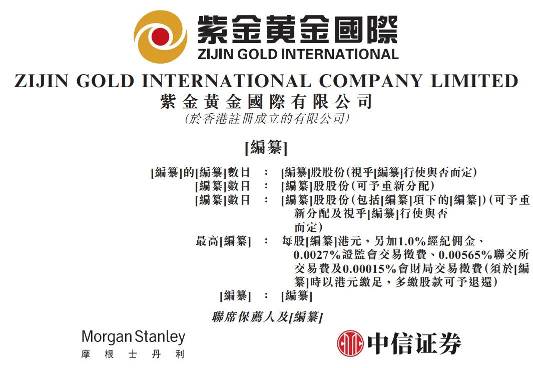 紫金黄金国际有限公司已向港交所主板递交上市申请,摩根士丹利、中信证券为联席保荐人。