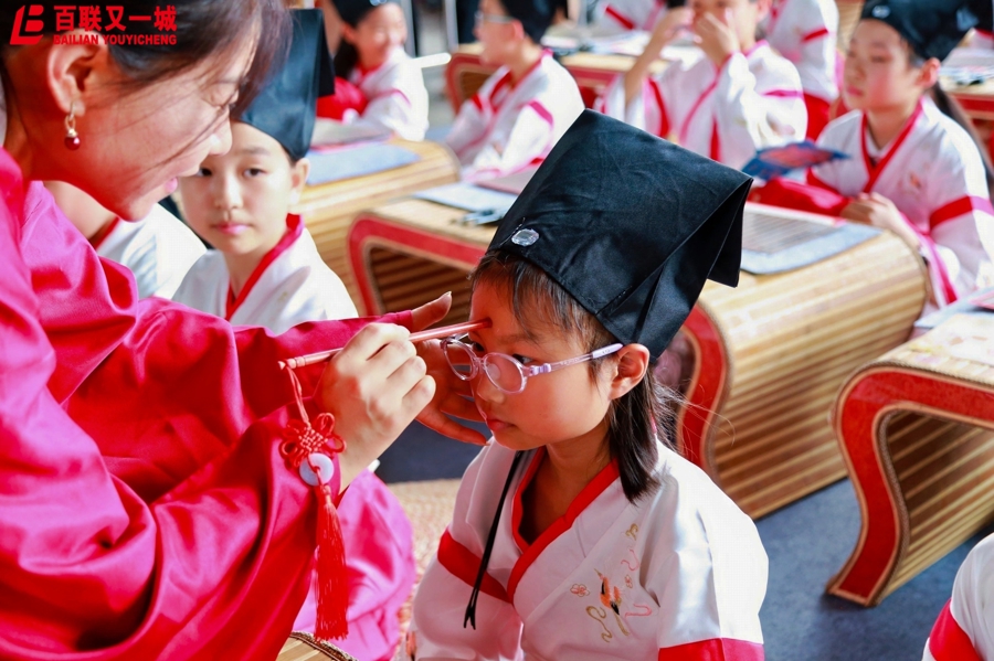 金秋送爽迎国庆,文脉传承润童心。昨天,在五角场百联又一城,一场“知书尚礼,童蒙养正”开笔礼活动吸引了周边的许多萌娃来参加,在“沃盥礼”“正衣冠”“诵经典”“朱砂启智”“书写人字”等5个仪式中,孩子们领略传统文化的魅力,特别是小学和初中新生更是感受到了迈入求学新阶段的仪式感。活动现场,百联又一城还发布了“米米嘟”田趣IP,通过与五角场街道的“梦想小院”打造计划联手,这一IP将结合“蓝天梦想小院—云顶耕读社”项目,为城市儿童打造一个集文化体验、亲子互动与农耕教育于一体的梦想小院,让孩子们在都市中也能感知农耕文明,体验“汗滴禾下土”的艰辛与乐趣。