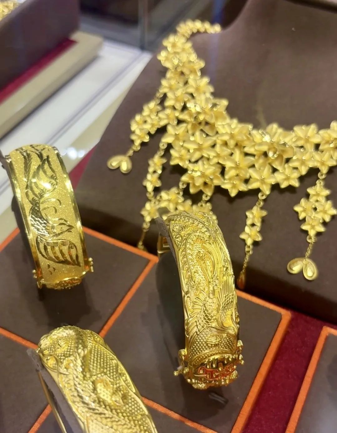 他和一旁的店员打趣道,“要是我按现价卖回给你们,你们收不收?”店员回复称,“收的,现在买黄金的人还是挺多的,而且最近大盘(指国际金价)好像也涨了不少。前两天有个外地来的客人一口气买了我们的结婚四件套(黄金戒指、耳环、项链、手链)花了3万多元,大家可能都觉得黄金价格还是比较保值的,一直在涨。”